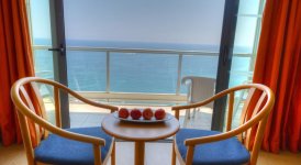 The hotel suites are beautifully designed, spacious and comfortably furnished. Most suites have outdoor balconies with stunning sea and promenade views. All feature kitchenette with microwave oven and mini refridgerator. Every suite has central heating, air conditioning and a circulating ceiling fan. Direct dial telephone, free satelite TV and hair dryer in the bathroom.