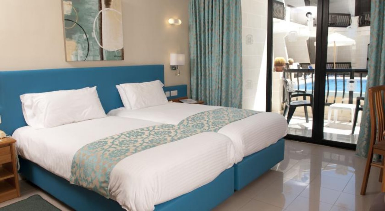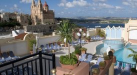Located in the village of Mellieha in the northern part of the island. The Pergola Club is one of the finest resorts in Malta. Just 1km uphill from Millieha Bay which is the islands most popular sandy beach, the club commands a prime location with breathtaking view of Mellieha Village. The shops, banks, bars, clubs are all within walking distance from the resort. The main bus terminus is right next to the resort and takes you all the way to Valetta the capital city. The sandy beach is only a couple of minutes by car or about 12 minutes walk.