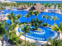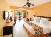 The Mayan Palace Riviera Maya Hotel is located in the exclusive Mayan Riviera on the Caribbean Sea. only 45 minutes from downtown Cancun. The hotel consists of 10 buildings, with 326 rooms and luxurious suites. Among its principal attractions, this extensive mega-resort has an interactive, interconnected swimming pool which covers an overall 8,000 -square- meter water surface, making it one of the biggest in Latin America. The white-sanded beach, sports facilities, and nice palapas for your comfort and rest, fully complement the hotel's installations for your ideal vacation. Tumtah Seafood Restaurant: Magnificent location with an ocean view, opens daily from 7:00 am to 11:00 pm. This restaurant offers breakfast a la carte from 7:00 am to 12:00 pm. Lunch and dinner restaurant specials include sea food and american type grilled beef cuts. Balchй: Snack grill located at the main swimming pool area, opens daily from 7:00 am to 11:00 pm. At the Balchй you can enjoy a complete, delicious breakfast buffet staring at 7:30 am until 12:00pm. Habana Moon: The only bar where fun never ends. Listen to the best and varied musical rhythms, like jazz, Blues, Flemish, Afro-Cuban, Calypso and many others. Open daily from 7:00 pm to 1:00 am, featuring a different show every week. Swim Pool Bar: Opens at 10:00 am, serving a great variety of domestic and imported beverages and cocktails, as well as snacks and light food, all of which you can enjoy while in the pool or while relaxing on the chairs around the pool.
