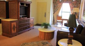 Adventure awaits you at Island One Resorts' Parkway International! Surrounded by a lush tropical forest, this International Five Star Resort offers you a host of resort-based activities that are sure bets for family fun. At Parkway International, you are centrally located in the heart of Orlando excitement - only one mile from the Walt Disney World® Resort main gate and just minutes from attractions including Sea World, Universal Studios Orlando and Pleasure Island. Your completely furnished two-bedroom, two-bath villa comfortably accommodates six people. And be sure to experience our Liki Tiki Lagoon water adventure water park adventure, located at Island One's Ron Jon Resort Orlando, just minutes away. You have full usage privileges to this 220,000 gallon water park that features five water slides, a wave pool, an erupting volcano and a toddler's area. It's guaranteed to exhilarate your whole family!For thrilling day trips, the Kennedy Space Center, Cocoa Beach, Busch Gardens, Silver Springs and Cypress Gardens are only about an hour away.