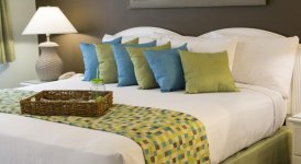 The Hotel units sleep 2 and have a bath, a king-size bed, microwave oven, cable television and coffee maker, but do not have a washer/dryer. 1 bedroom sleeping 4 have 1 bath, 1 double, queen or king bed and 1 sofa bed. 1 bedroom units sleeping 6 have 1 bath, 1 king bed and 2 sofa beds. 2 bedroom units sleeping 6 have either 1 3/4 or 2 baths and varying bed sizes. All units have air-conditioning, cable television, switchboard telephone and microwave oven.