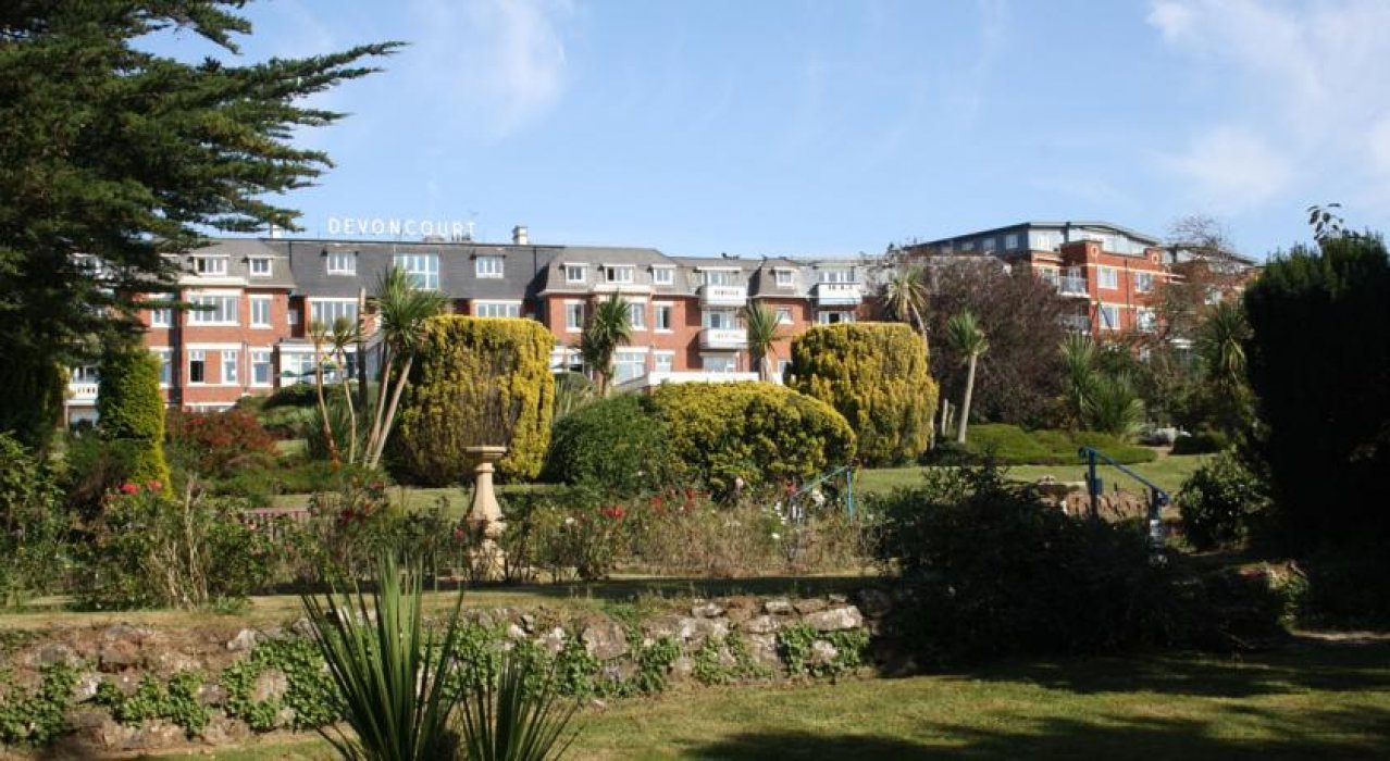 The Devoncourt Hotel stands in four acres of mature subtropical gardens sloping gently towards the sea and overlooking two miles of golden sandy beaches which are just a few minutes walk away.