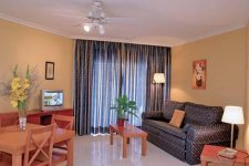 Studios have a living/dining room with a double sofa bed, a kitchenette with an electric hob, fridge-freezer and microwave and a bathroom. 1 bedroom units have a living/dining room with a double sofa bed, a bedroom with twin beds, an American-style kitchen with freezer, washing machine or dishwasher and a microwave and a bathroom. 2 bedroom units have a living/dining room with a double sofa bed, a bedroom with a double bed and a bedroom with twin beds. The kitchen is American-style with freezer, washing machine or dishwasher and a microwave. There are two toilets in the unit. The resort is good for handicapped people as it has ramps and other facilities. In the evening the resort offers a range of entertainments including the traditional Spanish flamenco dancers. There is an in-house recreation team who play an important role in organising daily activities such as archery or aerobics. These activities take place in a large area set aside specifically for sports where they do not disturb the tranquillity of the resort.