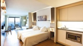 The elegantly furnished villas are situated around the beach or beside the beach, and each has a satellite TV and phone. Facilities at the ocean side Lanzarote Beach Club - Pecatello Resort Hotel,are extensive and include two beaches, a private island, several swimming pools, tropical gardens and a clubhouse with a well equiped gymnasium and games room, nightclub, sports bar, and restaurant. Pets are not allowed. There is a shuttle bus from the airport direct to the resort which is free of charge - it runs every hour and leaves at 30 mins past the hour. There is a supermarket at the Resort.