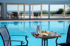 Royal Blue Hotel & Spa has an on-site restaurant serving Cypriot cuisine. Room service is available and guests can enjoy breakfast in the comfort of their room. You can enjoy your drink at the Blue Pool Bar with a breathtaking view over Paphos, or have a tasty snack, or ice-cream.
