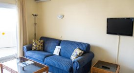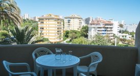 The resort is built around its own waterpark and is located within the Benal Beach complex in the heart of Benalmadena Costa. The area is well known for its nearby Marina, as well as its night life and an abundance of bars and restaurants. There are golf courses and fishing in the vicinity, and daily excursions to the local sites of interest. Although the pools in Benal Beach are open all year round, the water slides are in use during the summer months only. There is a charge for use of the Fitess Centre (which includes heated pool, gymnasium, sauna, jacuzzi and sunbeds) in Benal Beach however discounts are given to Kingfisher guests. There is a charge for electricity of 18 Euros per week.