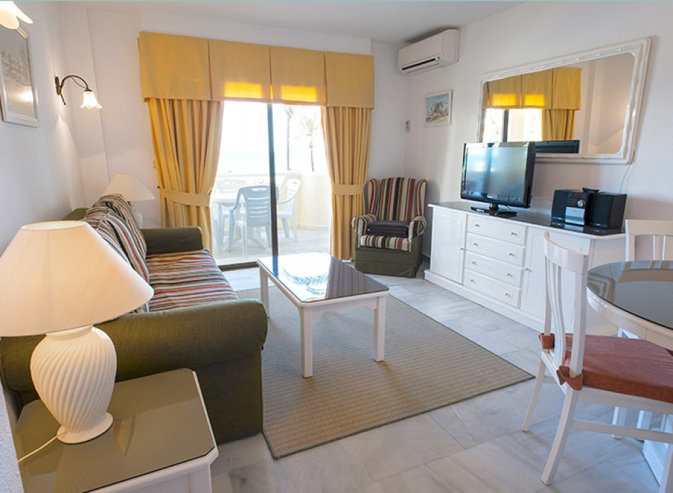 Las Mimosas Beach Club now comprises twenty-one timeshare apartmentswithin the larger two hundred unit freehold community. Is an exclusive Andalusian style development set among superb tropical gardens with privates swimming pools, uniquely place right on the beach side, looking over the shimmering blue Mediterranean. Communal facilities are fully maintained throughout the year,. The resort also takes great care as regards security, providing a safe traffic-free environment for children and all visitors seeking relaxation and comfort. Accommodation is available in twelve one-bed apartments, seven two-bed (two bath) units, a well equipped studio, an a luxury three-bed penthouse. All fixtures and fittings are regularly serviced and replaced to maintain the Club's prestige rating and kitchens are fully equipped with hob, oven, microwave and washing machine. Linen and maid service is provided twice weekly. TV and radio broadcast most popular EU channels and the on-site office houses a well used exchange library. Please note, reception is open 9. 00 - 16. 00 Monday to Thursday 9. 00 - 13. 00 Friday, 9. 00 to 24. 00 Saturday (subject to final arrival) and 10. 00 to 12. 00 on Sunday. Please be advised you will only be able to check-in during office hours. Should you arrive after midnight on Saturday and you will need to wait until opening hours on Sunday.
