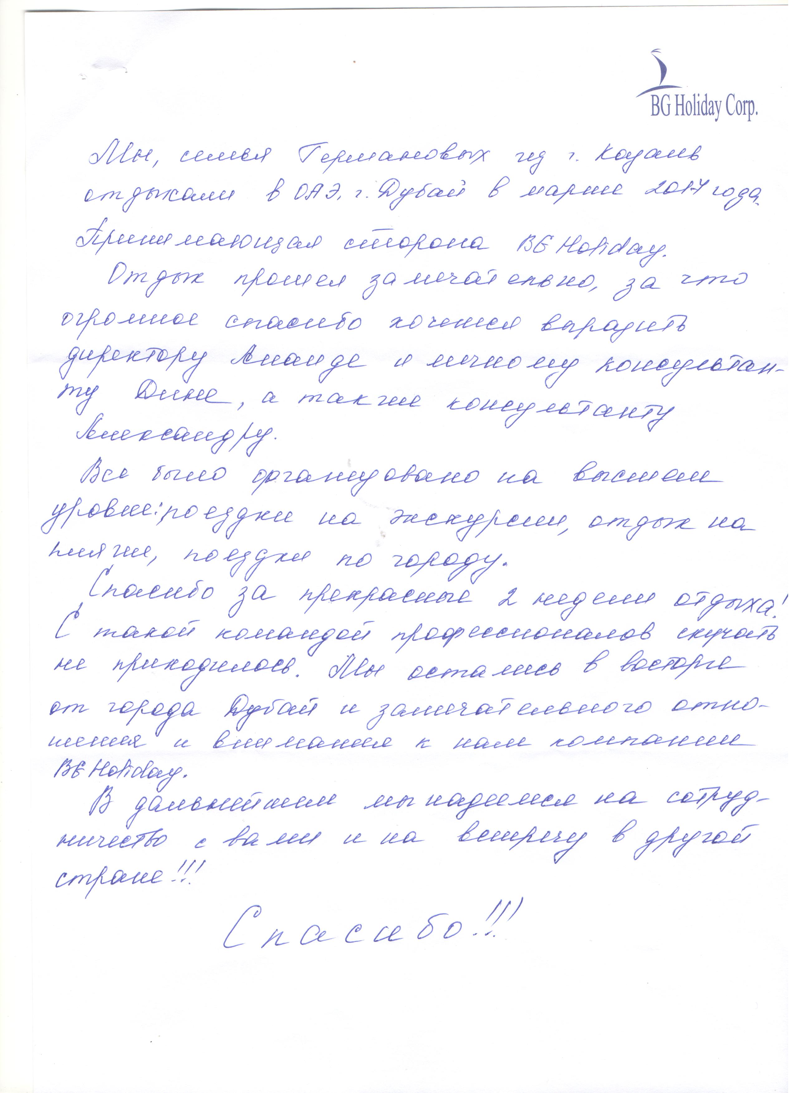 С такой командой профессионалов скучать не приходилось. Мы остались в восторге от г. Дубай и замечательного отношения и внимания к нам компании BG Holiday.
