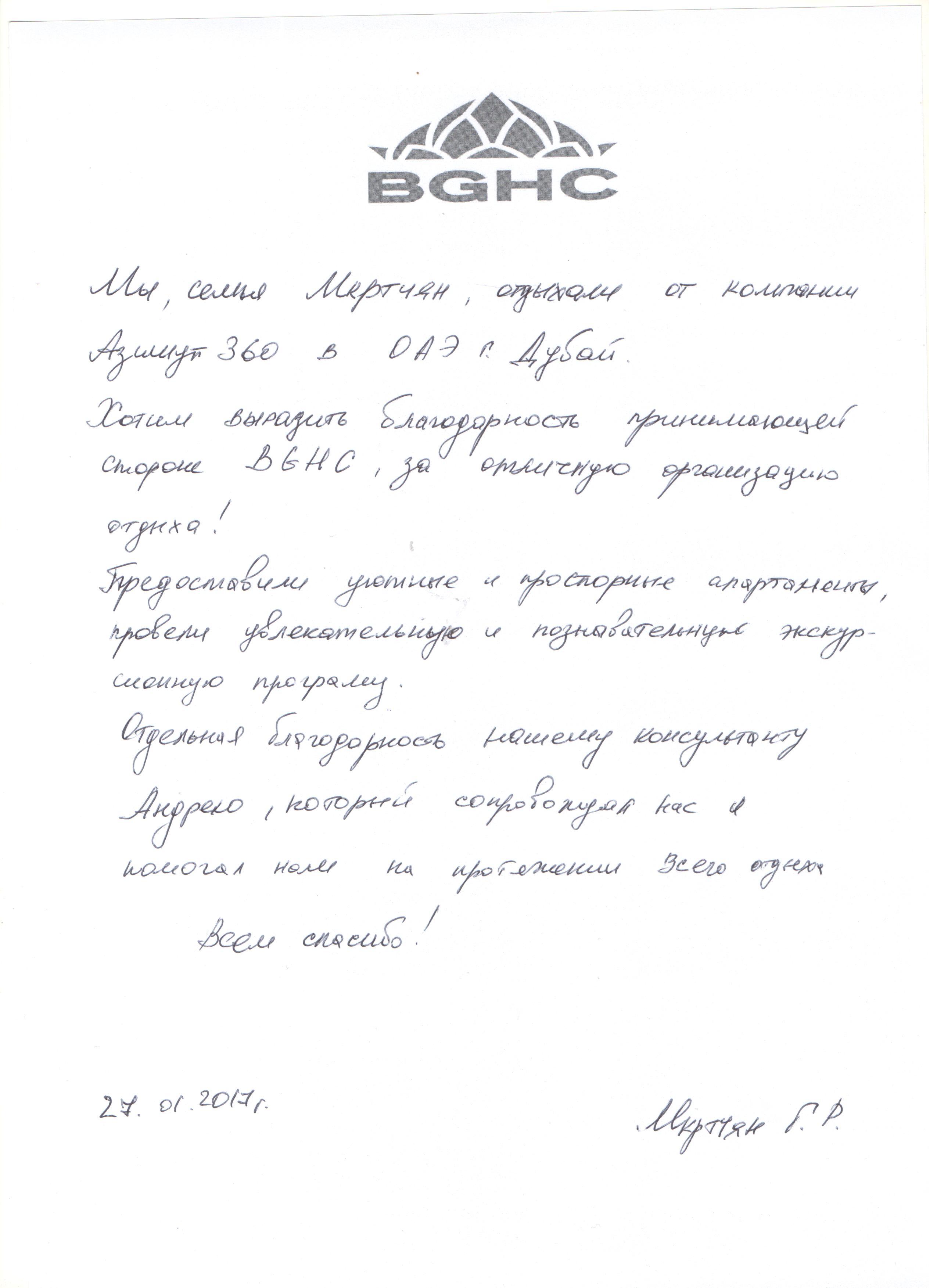 Отзыв клиентов компании BG Holiday Corp. - Семья Мкртчян, г. Пенза