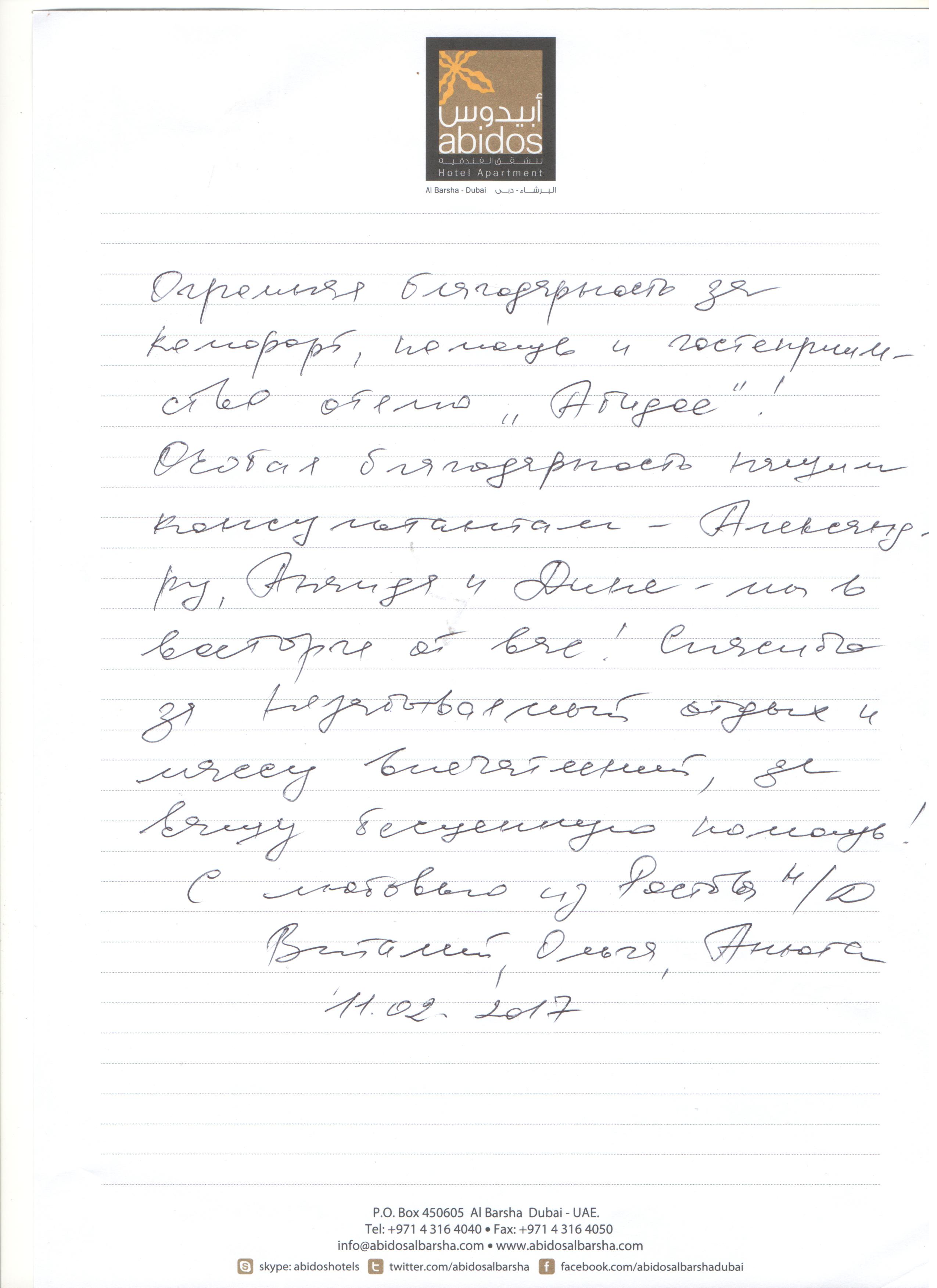 Огромная благодарность за комфорт и гостеприимство отелю "Абидос"!
